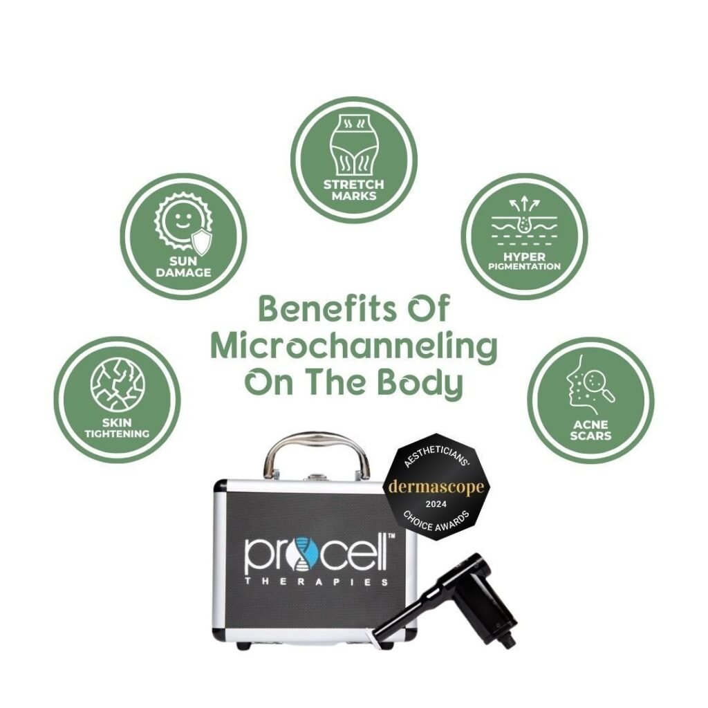 Procell has an extremely short downtime: 60-90 minutes while the microchannels in your skin close. Compared to the 3-5 day recovery period for traditional microneedling, Procell’s microchanneling treatment is the obvious choice for high quality results with minimal downtime.